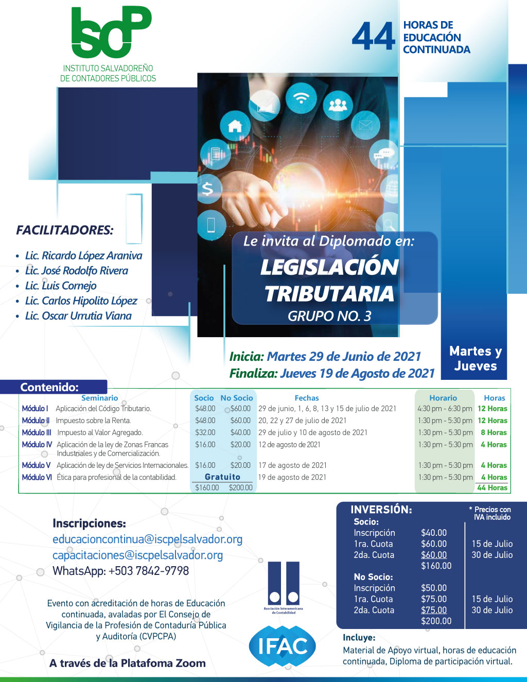 ✅ El Instituto Salvadoreño de Contadores Públicos te invita a participar en el "Diplomado en Legislación Tributaria"