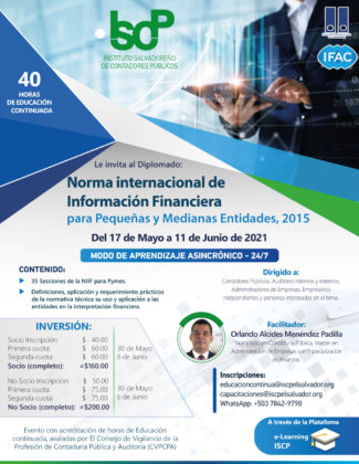 El ISCP te invita a participar en su Diplomado "Norma Internacional de Información Financiera para Pymes, 2015" en modalidad 100% virtual.