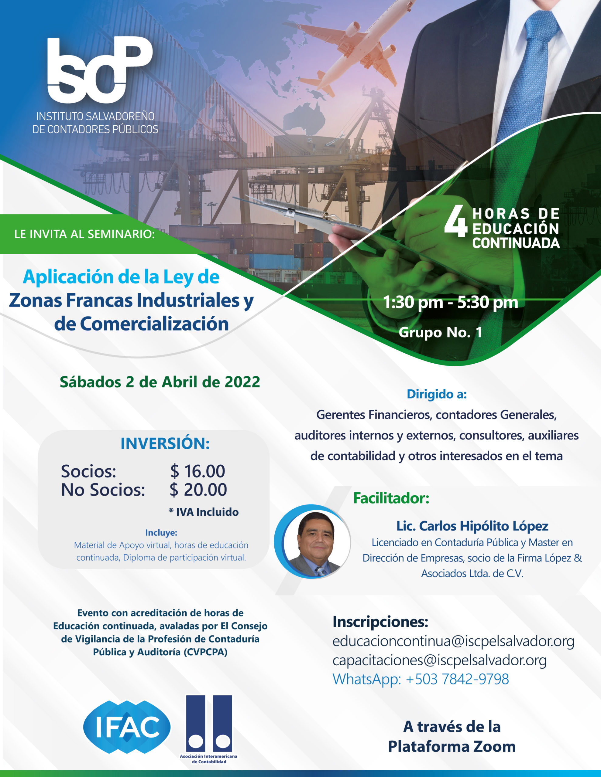 El ISCP te invita a participar en el "Aplicación de la Ley de Zonas Francas Industriales y de Comercialización G1-2022"