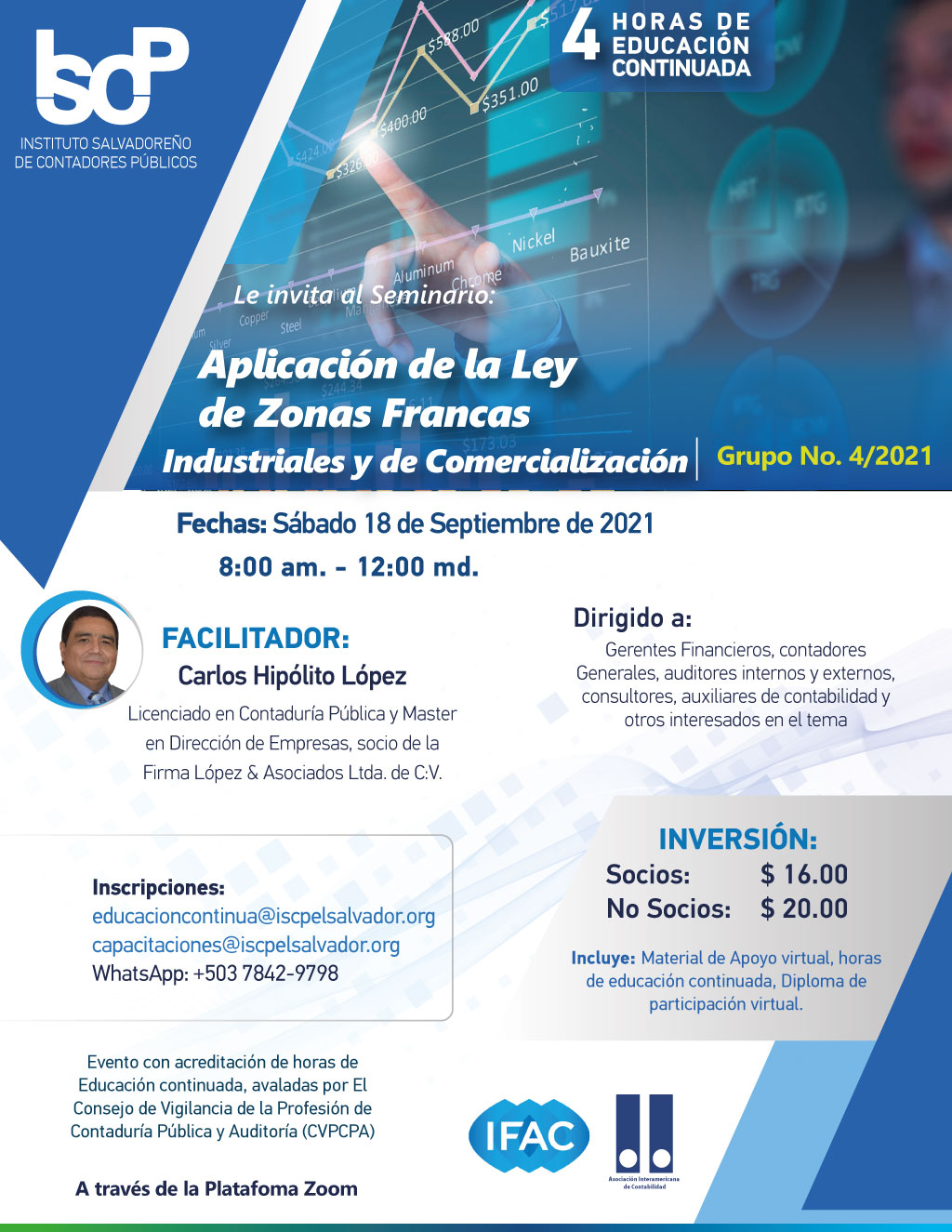 El ISCP te invita a participar en el seminario "Aplicación de la Ley de Zonas Francas Industriales y de Comercialización ".