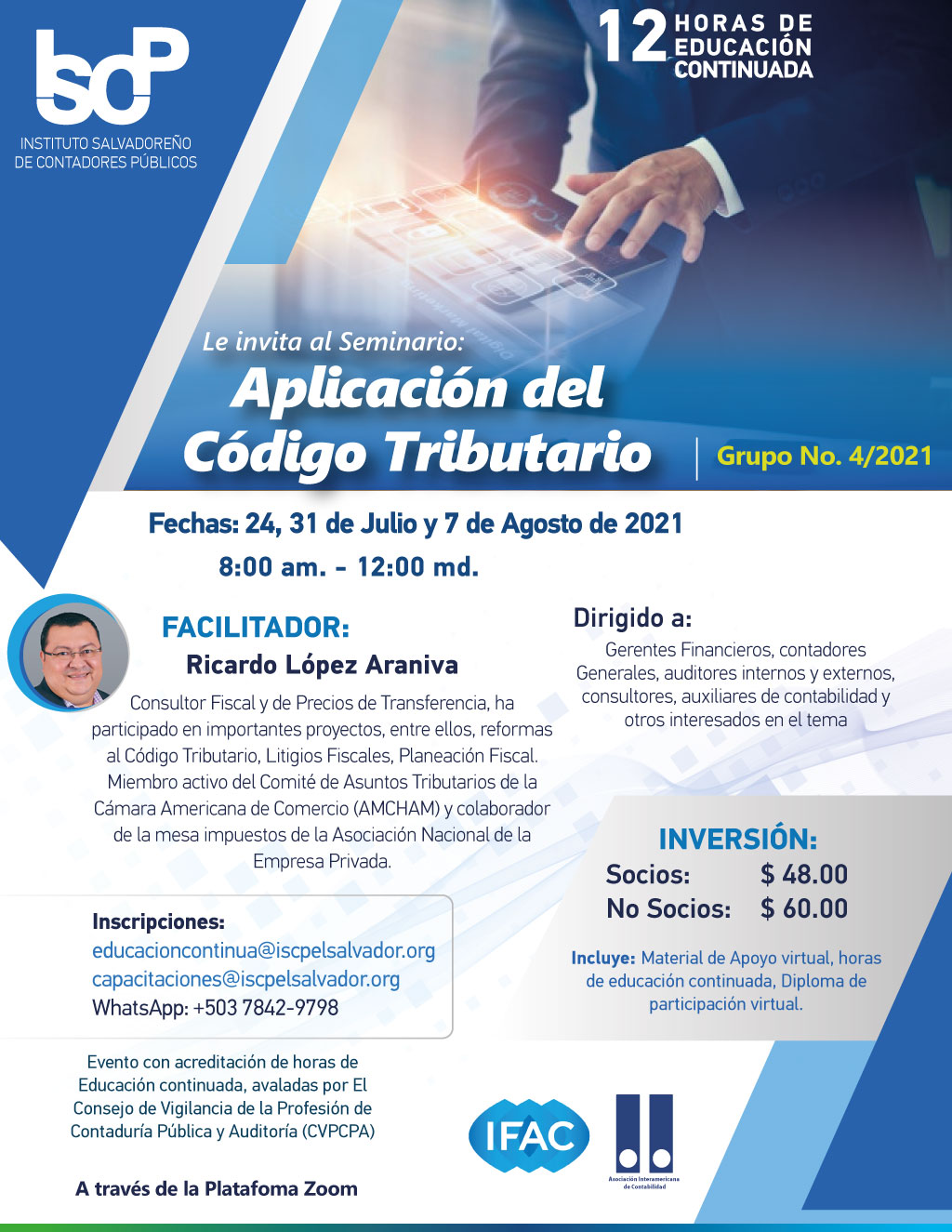 Envía comprobante de depósito al correo electrónico capacitaciones@iscpelsalvador.org - educacioncontinua@iscpelsalvador.org o al whatsapp 7842-9798.