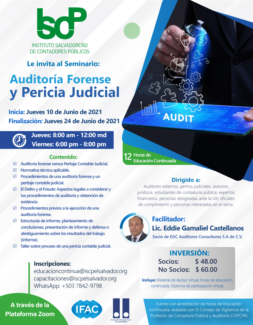 El ISCP te invita a participar en el seminario "Auditoria Forense y Pericia Judicial" este 10,11,18 y 24 de junio.