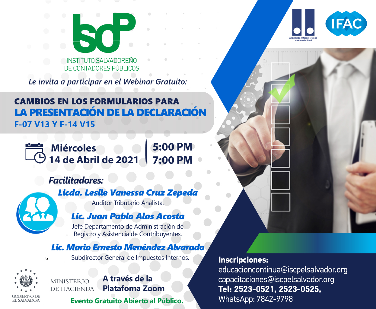 📍✅Te invitamos a participar en el seminario “Cambios en los Formularios para la Presentación de la Declaración F-07 v13 y F-14 v15” preparado en coordinación con el Ministerio de Hacienda este miércoles 14 de abril.