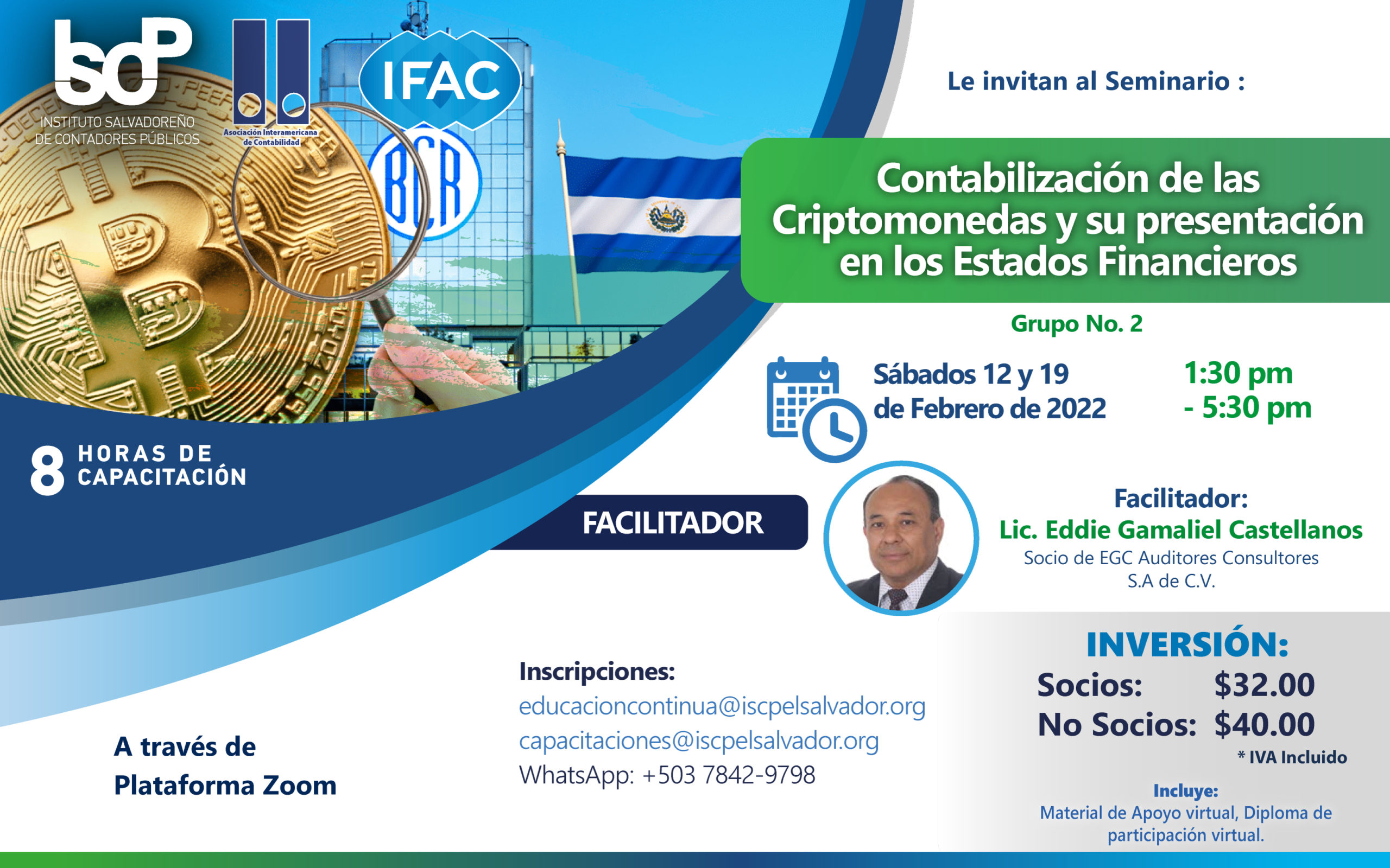El ISCP te invita a participar en el seminario"Contabilización de las Criptomonedas y su presentación en los Estados Financieros" donde conoceras los nuevos mecanimos de contratación gubernamental y compras de la municipalidad