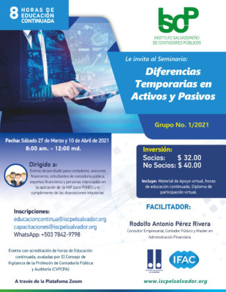 El ISCP te invita a participar en el seminario "Diferencias Temporarias en Activos y Pasivos".