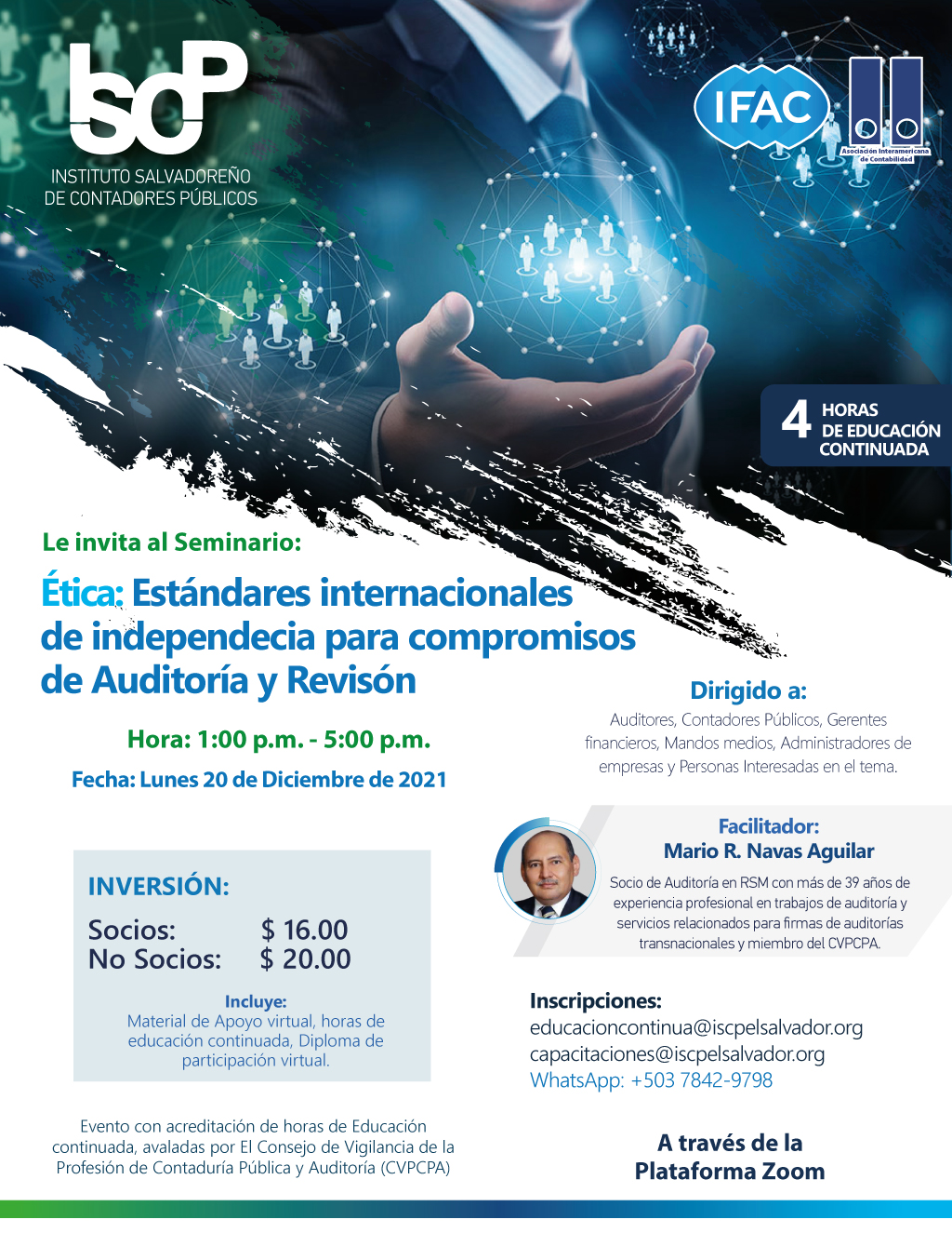 El ISCP te invita a participar en el seminario "Ética: Estándares internacionales de independencia para compromisos de Auditoría y Revisión".