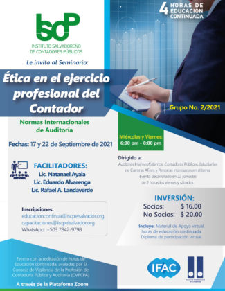 El ISCP te invita a participar en el seminario "Ética para el Ejercicio Profesional del Contador G2-2021".