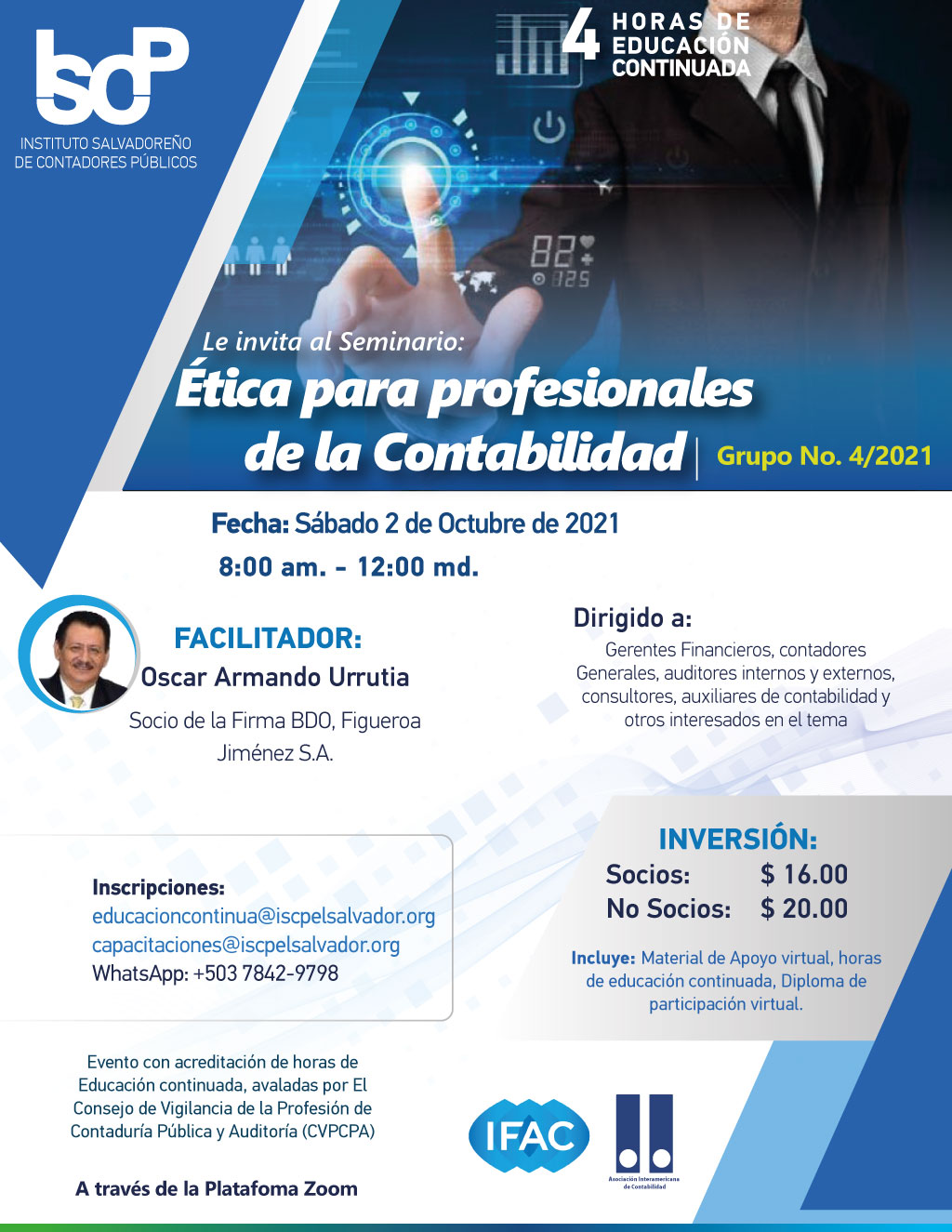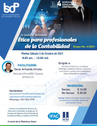 El ISCP te invita a participar en el seminario "Ética para Profesionales de la Contabilidad G4-2021".