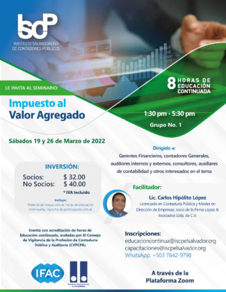 El ISCP te invita a participar en el ""Impuesto al Valor Agregado G1-2022"