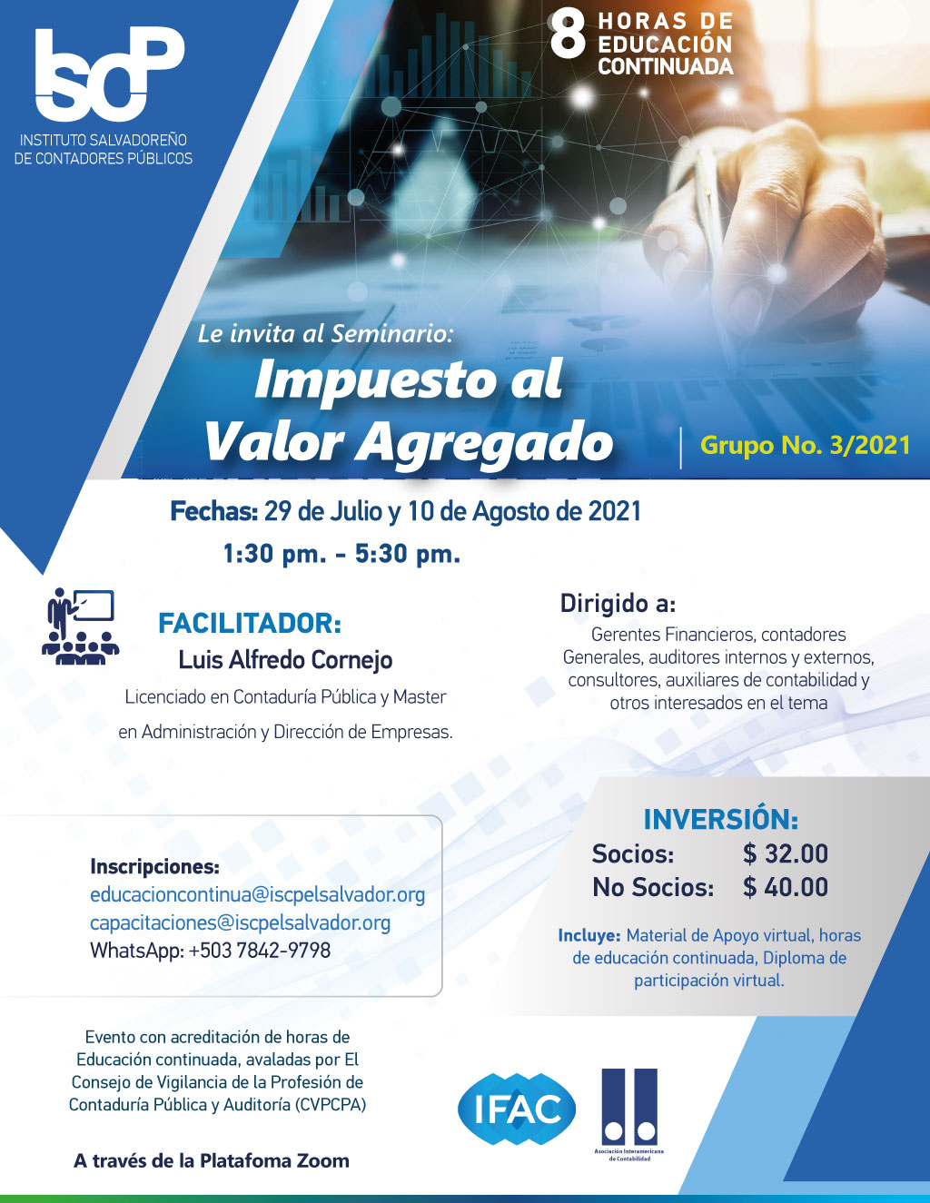 El ISCP te invita a participar en el seminario "Impuesto al Valor Agregado".