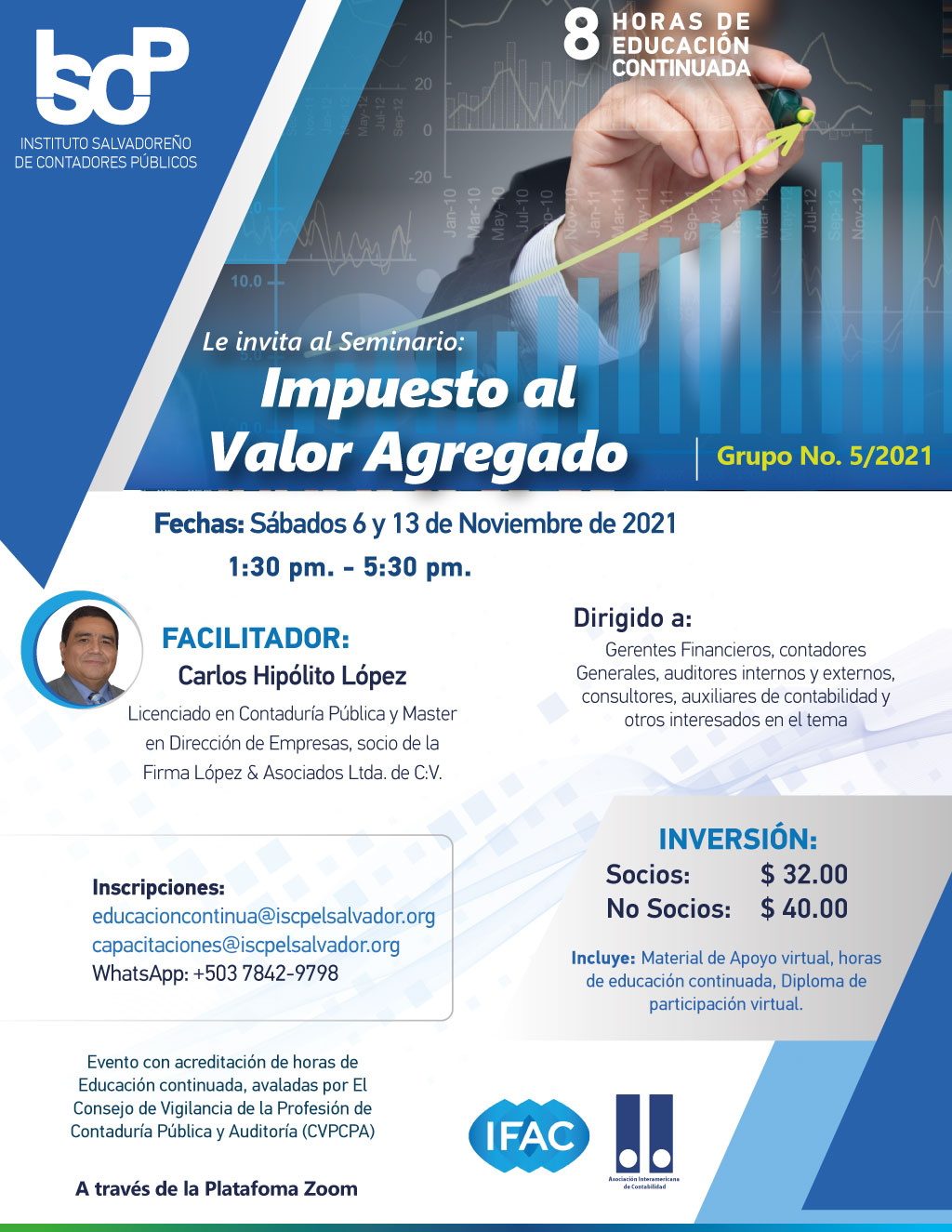 ✅ El ISCP te invita a participar en el seminario "Impuesto al Valor Agregado".