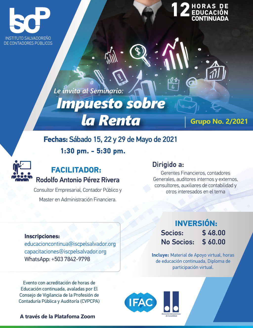 El ISCP te invita a participar en el seminario "Impuesto sobre la Renta G2 -2021".