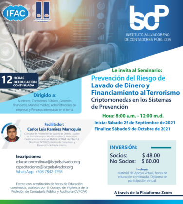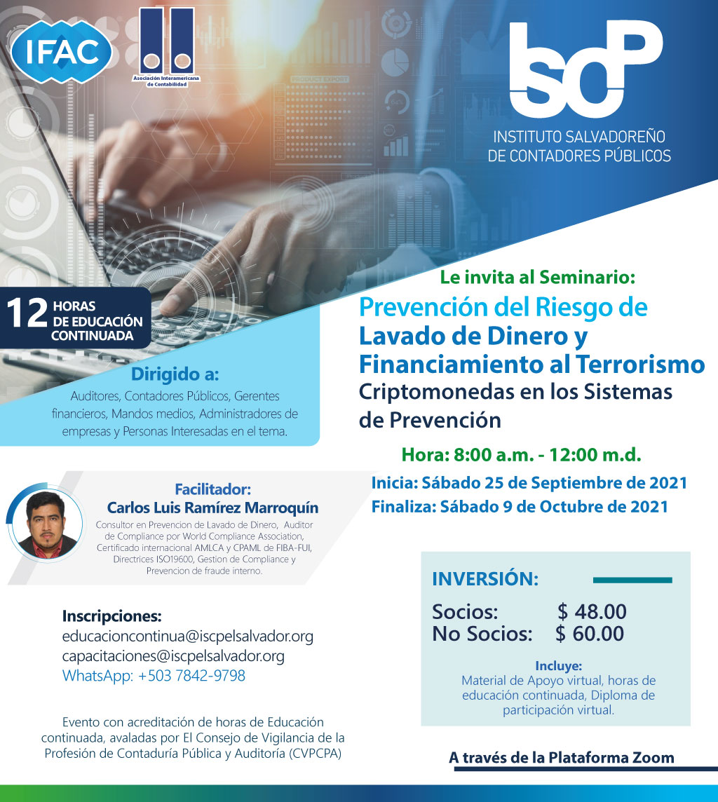 El ISCP te invita a participar en el seminario "Prevención del Riesgo de Lavado de Dinero y Financiamiento al Terrorismo- Criptomonedas en los Sistemas de Prevención".