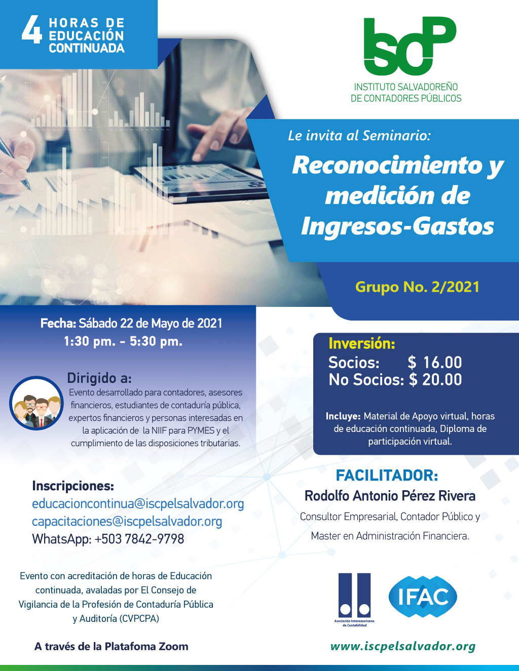 El ISCP te invita a participar en el seminario "Reconocimiento y Medición de Ingresos-Gastos G2 -2021".